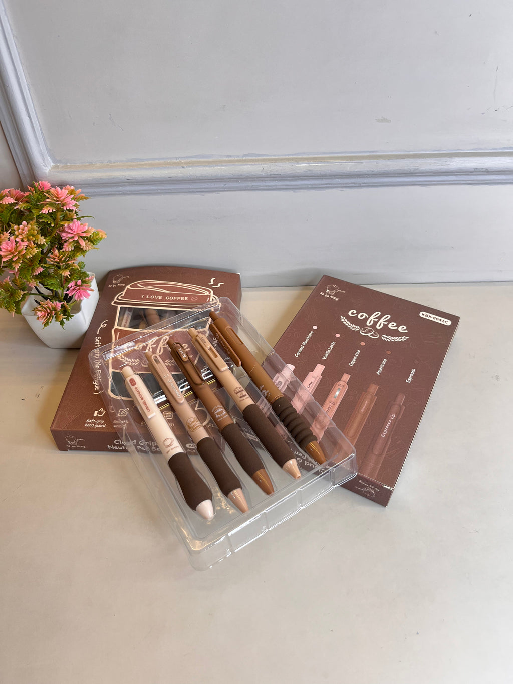 Set of 5 Coffee Theme Gel Pens for Writing Elevate your writing experience with this curated collection of five coffee-themed gel pens. Each pen features smooth gel ink that delivers consistent, vibrant lines ideal for everyday writing, note-taking, and creative projects. The coffee-inspired designs bring a touch of personality to your desk while maintaining professional functionality.